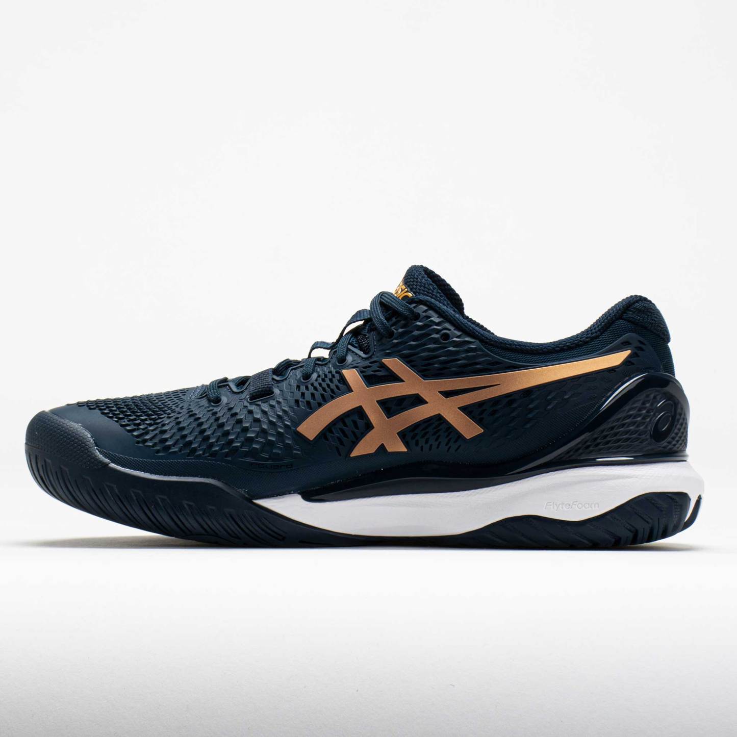 Built for baseline grinders, the ASTHEICS GEL-Resolution 9 tennis shoe provides support for the long match. Slide into a flexible DYNAFIT?upper and stay comfortable under pressure. DYNAWALL?technology in the midsole extends at the heel to support lateral movements. Enjoy a secure feel during quick transitions from the DYNAWRAP?technology in the eyestay. The full-length outsole and separated heel add support for quick recoveries between shots. For players who control the point from the baseline, try the ASTHEICS GEL-Resolution 9!