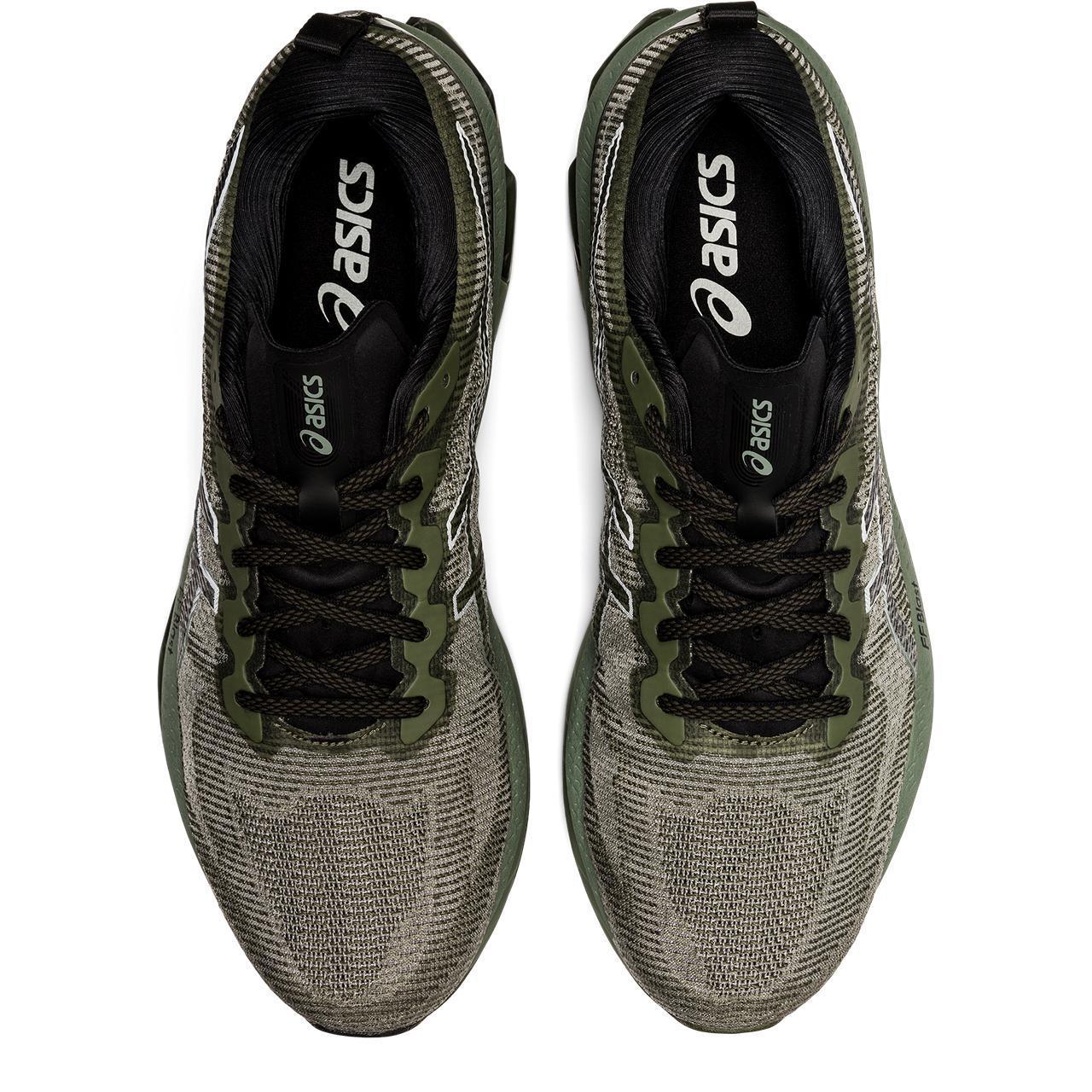 An arrangement of GEL technology and FF BLAST cushioning create a soft yet responsive step. After easing into the landing phase, the shoe propels you forward with a smooth transition.The midsole's shape is inspired by a samurai's curvaceous katana sword. With a Pebax plate in the center, this feature redirects your movement forward and gives your run a faster feel.