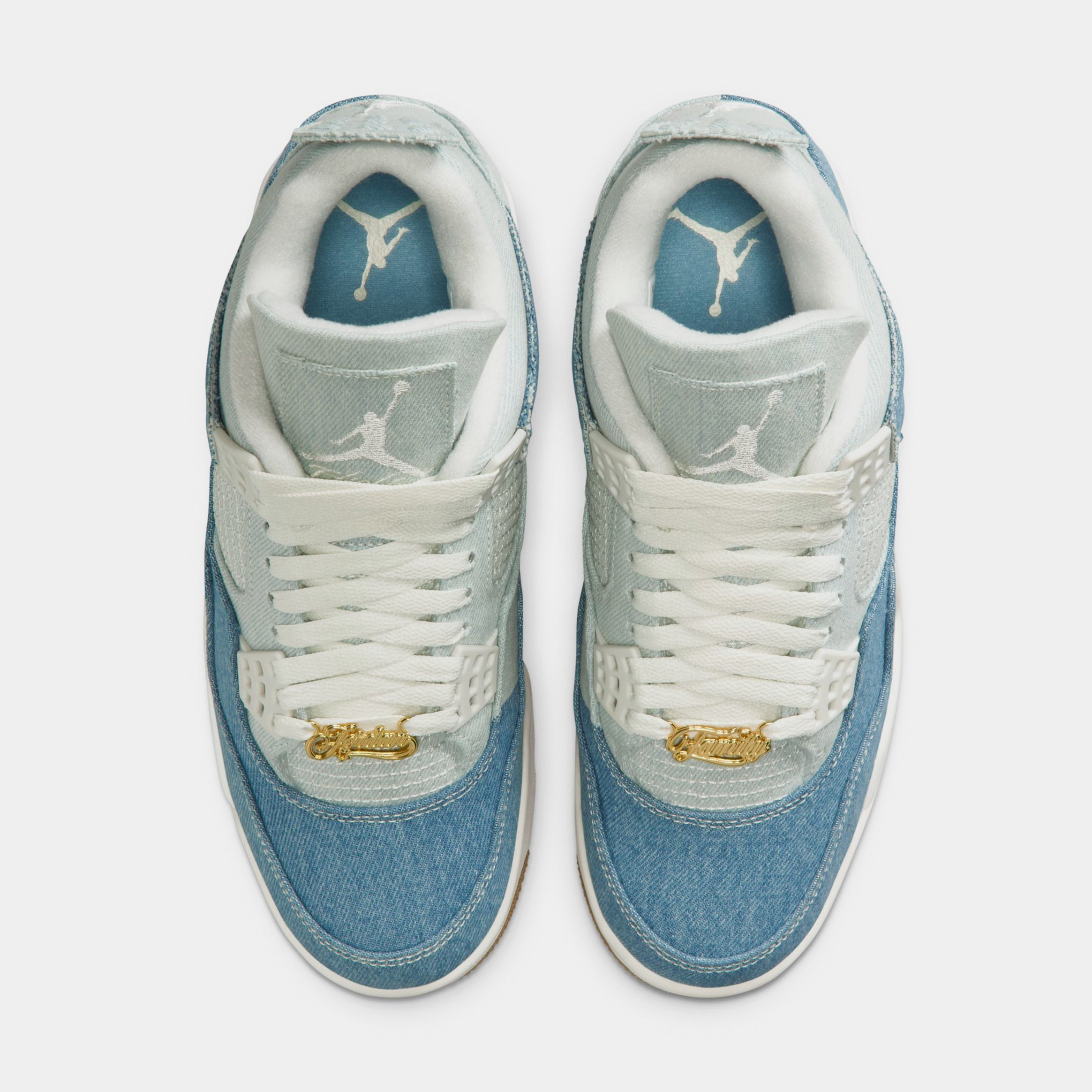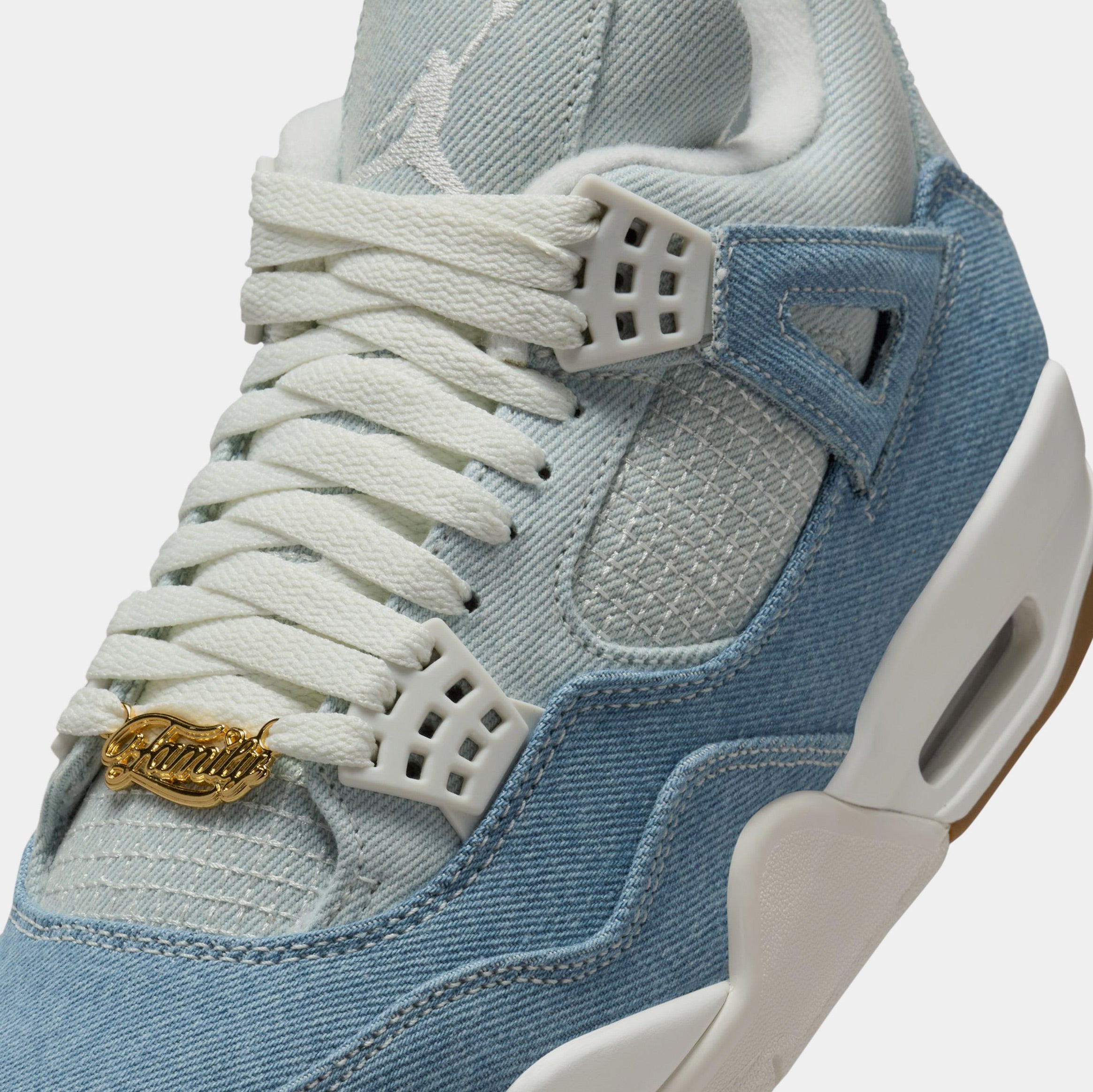 Jorthedan Denim and gold. We��re celebrating two iconic wardrobe staples with this AJ4 Retro. All the details you love are there too, from the eyestays to the visible air..